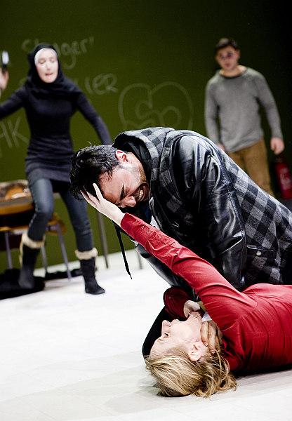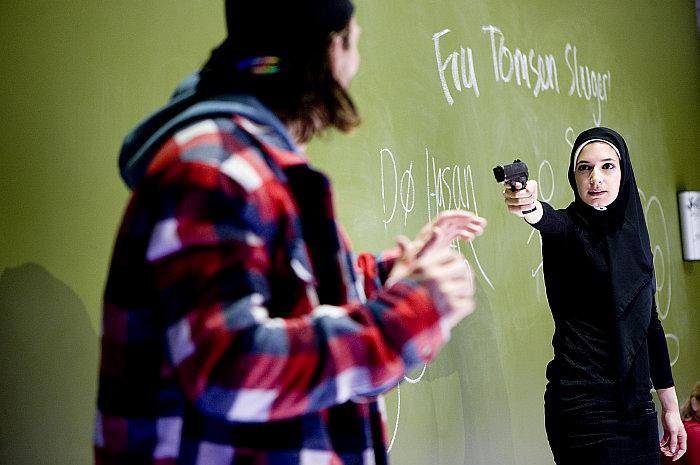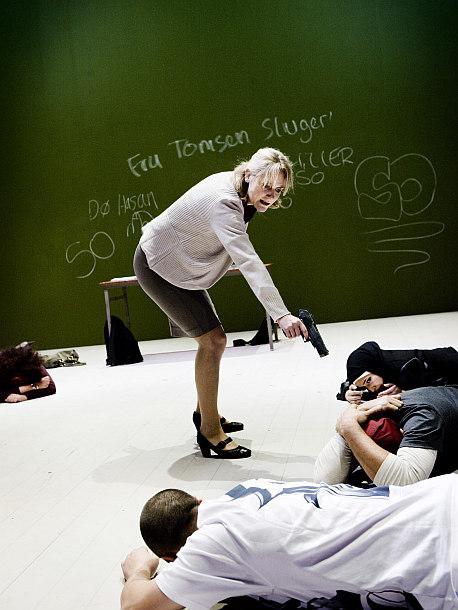 Re: Anette - Dies & Das Antwort #4 – 13. Okt 2012, 22:23 Uhr Anette hat auch schon wieder ein neues Theaterstück vor sich. Es heißt Ondt blod und es wird etwa drei Wochen lang vom 8. November bis zum 1. Dezember 2012 aufgeführt werden.Es ist ein deutsches Theaterstück, das 2011 in Deutschland wohl für Aufsehen gesorgt hat und sehr erfolgreich überall gespielt wurde und auch noch gespielt wird. Der dänische Titel müsste wörtlich übersetzt "Böses Blut" heißen, aber der deutsche Originaltitel des Stückes ist "Verrücktes Blut".Das hier ist die Handlung:Eine Lehrerin möchte den Schülern in der Projektwoche den Dichter Friedrich Schiller nahe bringen. Doch ihre Handvoll Schüler, alle mit Migrationshintergrund, hören mal wieder nicht zu und machen was sie wollen. Sie reden miteinander, beschäftigen sich mit den Handys, pöbeln herum und allesamt verachten sie die westliche Kultur.Als die Situation angespannter wird und einem Schüler im Gerangel plötzlich eine Pistole aus der Tasche fällt, zögert die Lehrerin kurz - und ergreift dann ihre Chance: Sie schnappt sich die Waffe und nimmt die Schüler als Geiseln. Anschließend zwingt sie diese, ein Theaterstück von Schiller aufzuführen.Wie die Geschichte dann weitergeht und endet, konnte ich noch nicht in Erfahrung bringen.Das hier ist die Seite des Theaters zum Stück: http://www.bettynansen.dk/ondt-blod.htmlUnd das Foto ist schon mal ein kleiner Vorgeschmack auf das, was die Zuschauer erwarten wird: